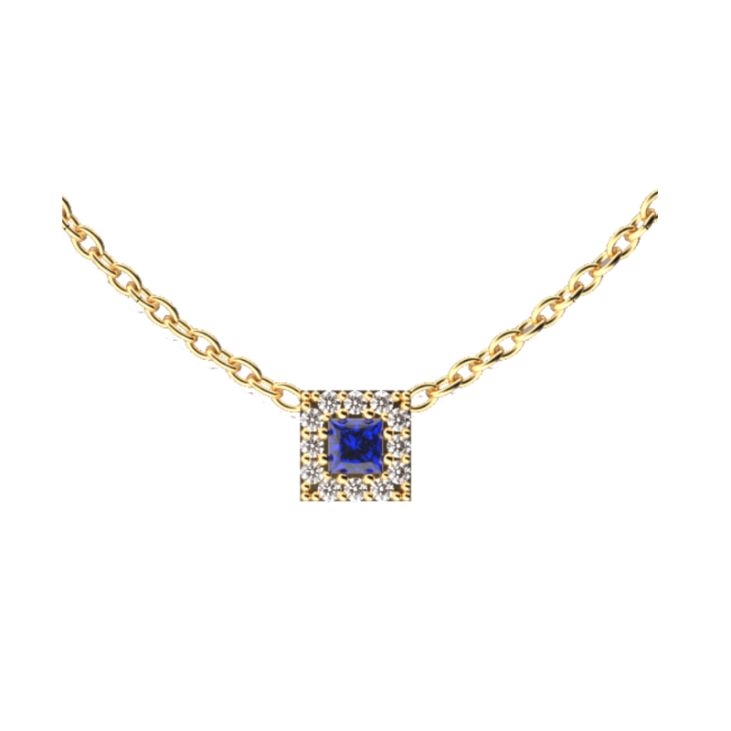 Al centro del ciondolo è incastonato uno Zaffiro naturale taglio square.