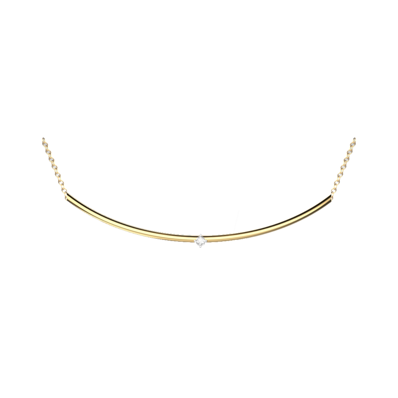 La sua particolarità è data dall’inserto centrale, impreziosito da un Bnaturale incastonato al centro, che dona luminosità e raffinatezza al girocollo.
