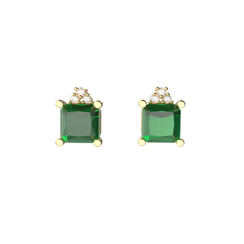 Orecchini in Oro giallo 18 carati con Agata verde taglio square abbracciata da 3 Diamanti sulla sommità. Una combinazione ideale per le occasioni eleganti e come regalo ad una persona cara, gli orecchini presentano una chiusura con perno e farfallina per una perfetta aderenza.