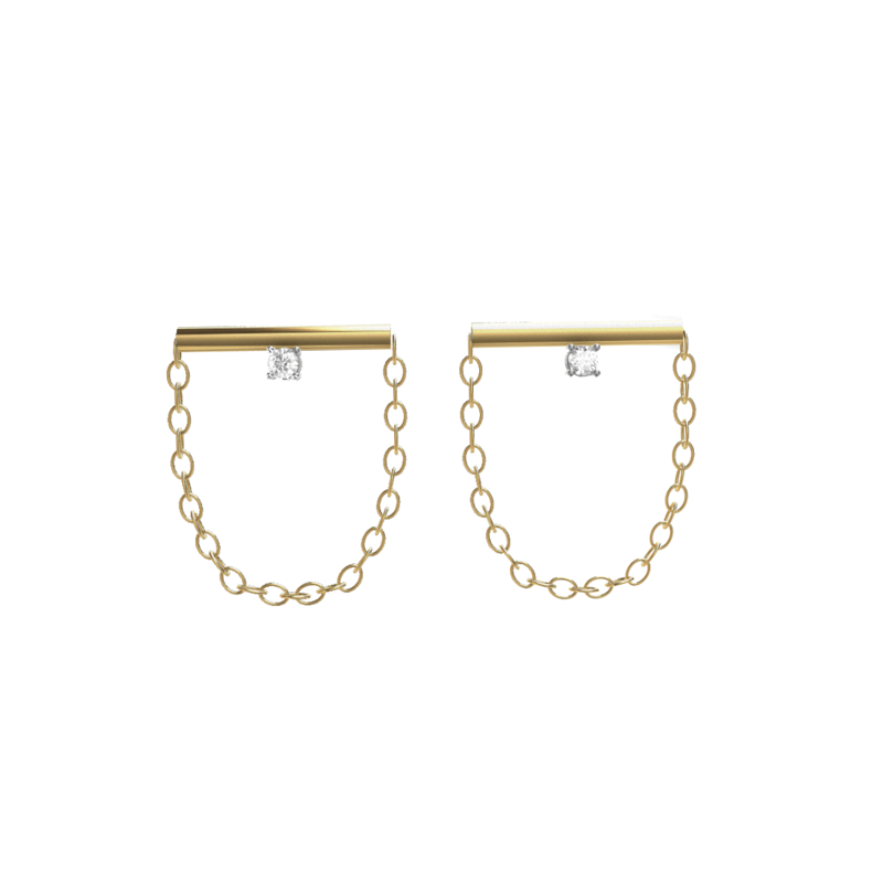 Gli orecchini To Be sono Gioielli eleganti realizzati in Oro giallo 18 carati. La loro particolarità è data dall’inserto centrale, impreziosita da un Brillante incastonato che dona luminosità e raffinatezza agli orecchini ed una catenina pendente. Con una chiusura a vite per una perfetta aderenza all'orecchio.